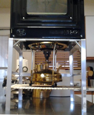 A small Butterfly stove can fit under a 12" square and 10" high stand,